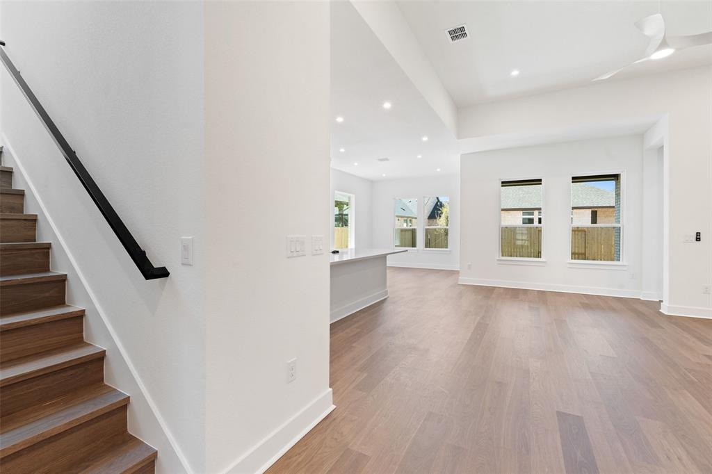 Main Floor; Breakfast Bar, Center Island, Quartz Counters, Gourmet Kitchen, High Ceilings, Open to Family Room, Pantry, Recessed Lighting
