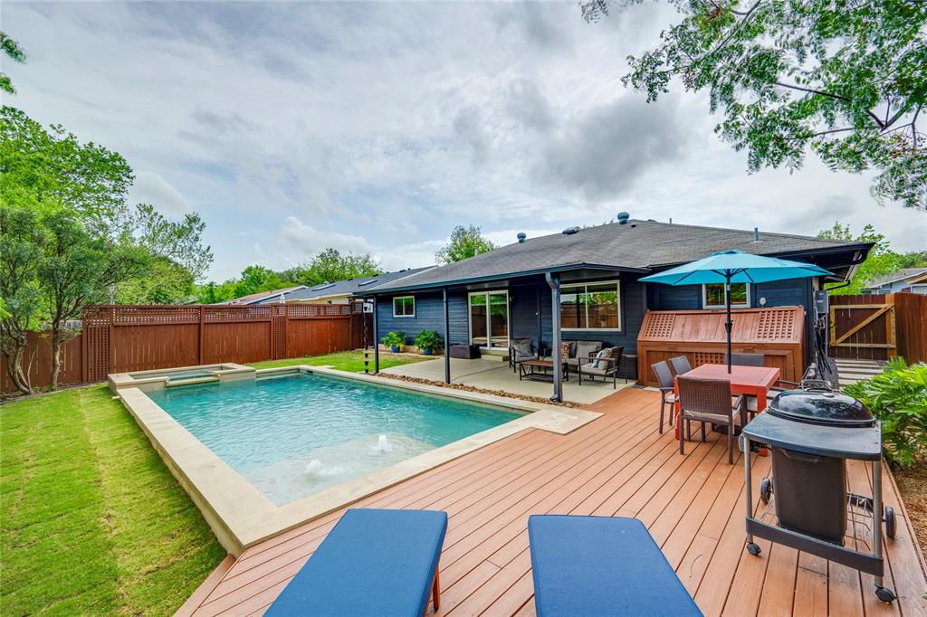 Updated home with pool + spa. This move-in ready property features new flooring, new interior and exterior paint, updated lighting, and modern finishes throughout. Kitchen offers granite counters, solid wood soft-close cabinets, and gas stove. Primary suite bathroom includes dual sinks + walk-in shower. Hallway bathroom has Tub/Shower Combo. Backyard includes covered patio, deck and privacy fence. Pool/Spa is controlled by a Pentair app so you can control lights, pumps, and temperatures all from your phone! New A/C as of (2023) Added Radiant barrier + attic fans for Energy Efficiency (2025)