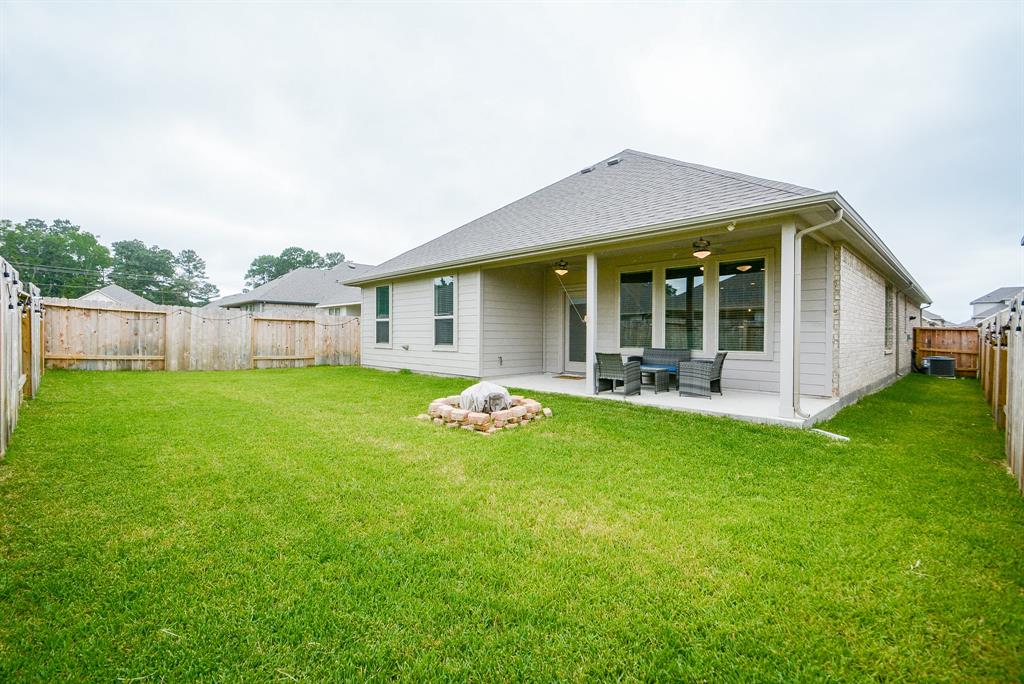 Come see this beautiful recent build in the Lake Conroe area! This open concept features the newest design trends! The spacious kitchen hosts sleek white cabinets with beautiful granite countertops with a subway tile backsplash. All stainless steel appliances and designer pendant lighting. The expansive primary suite has a tub, separate shower and dual sinks. Don't miss the fenced backyard with oversized covered patio and two ceiling fans!