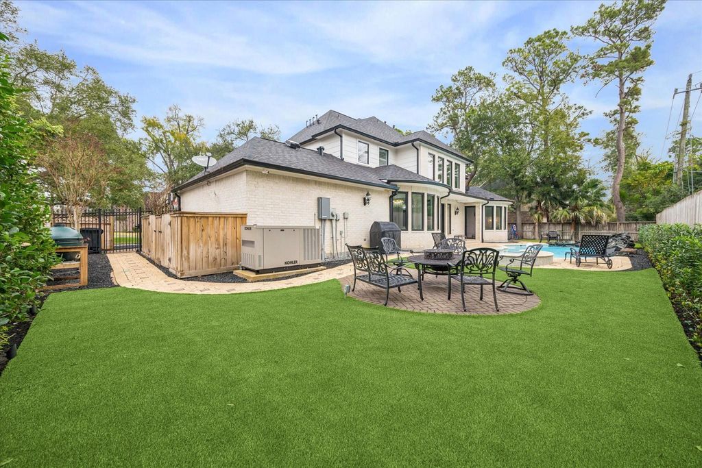 Stunning contemporary home tucked away on a quiet cul-de-sac completely rebuilt from the studs in 2025. Exceptional craftsmanship & luxury finishes throughout including white limestone, marble, porcelain & wood floors; PEX plumbing, full-house generator, new roof, RAM windows & doors; & 2-stage whole-home water filtration system. Dramatic 2-story Foyer flanked by Home Office & Formal Dining w/ custom bar clad in striking Panda marble w/ glass shelving & marble & gold inlay backsplash. Chef’s Kitchen w/ custom cabinets, 10 ft island, Décor 48” fridge/freezer, Café double ovens, 2 dishwashers, 6 burner Wolf gas range & Breakfast Room w/ mini fridge & expanded coffee station. Light-filled Living Room opens seamlessly to the Kitchen & features a limestone-surround gas fireplace. Elegant 1st Floor Primary boasts a spa-inspired marble bath w/ dual vanities, soaking tub, frameless shower & generous closets. Entertainer’s dream backyard w/ heated pool, hot tub & turfed green space.