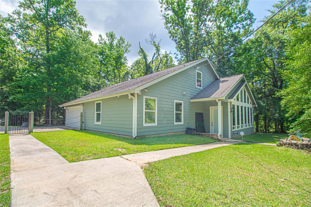 Here is a one-of-a-kind home in a lake side subdivision. This home sits high above the lake with a view at a distance. Nested in the woods at the end of the street this home provides privacy and peaceful setting. Down you will find a large living area with a lot of widows and a vaulted ceiling and a wood burning stone fireplace. Just off the living room a media theater that could be converted into another bedroom. Small kitchen area with 2 bedrooms up a few stone steps. A large garage finished garage with extra space and laundry closet. And guest quarters accessed from outside featuring a small kitchen and living room, bedroom and office space and its own laundry.