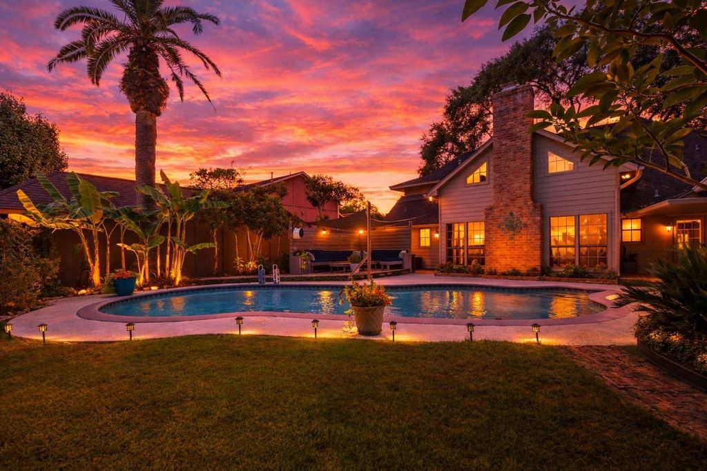 This move-in ready home is in one of Clear Lake’s most established neighborhoods. A marble-tiled entry opens to the expansive living room, showcasing soaring cathedral ceilings, a wet bar, & custom built-ins. It flows into a standout kitchen with a breakfast bar, double ovens, granite countertops, wine fridge, a brand-new dishwasher, more built-ins & room to spare. The floorplan features a first floor primary suite plus a flex room, while three bedrooms & two full baths are upstairs — perfect for privacy, work-from-home, or multigenerational living. Outside, enjoy a private backyard retreat with a pool, covered deck, outdoor wet bar, lush garden & side yard with dual garage doors & a workshop . There's also updated major components, LVP flooring, & a fence under three years old. Located in a elevated Zone X flood area (no insurance req.) & within walking distance to CCISD schools, trails, parks, & community amenities. Competitively priced with motivated sellers— BRING ALL OFFERS!