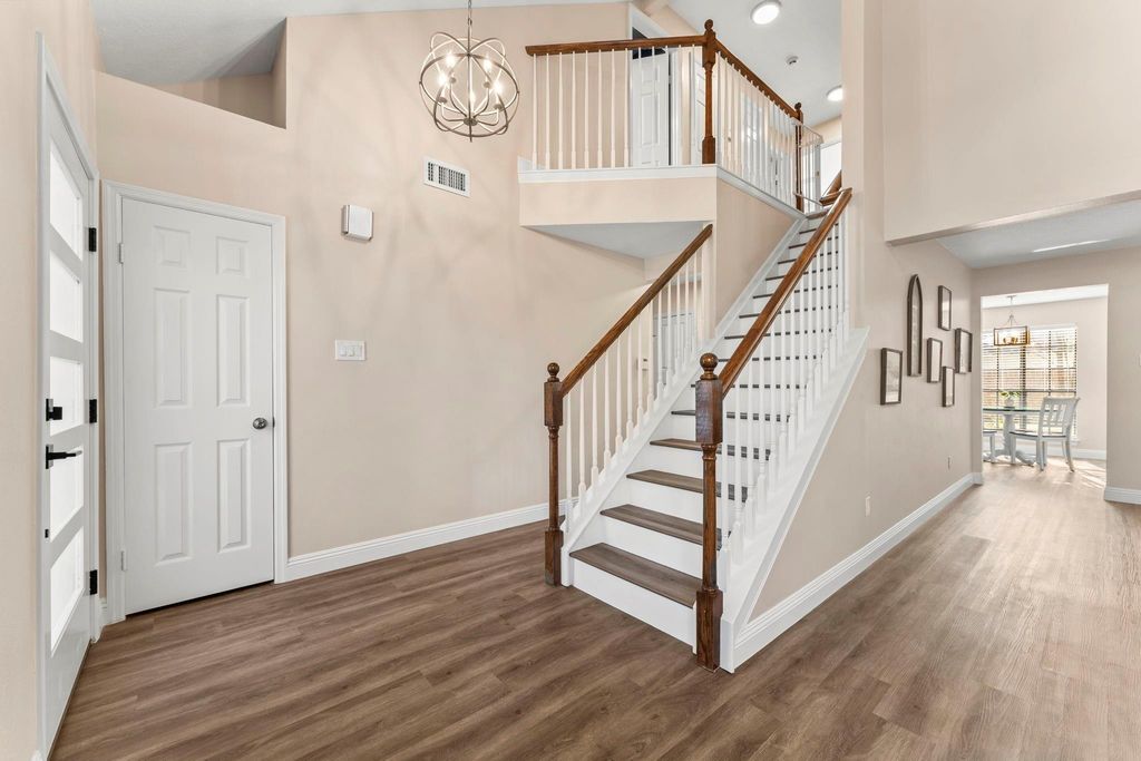Completely turnkey in the heart of The Woodlands! Updates inside & out include attractive stained brick, fresh exterior & interior paint, new HVAC system including furnace & ducts, upgraded electrical panel, EV charger (Tesla compatible), new flooring on first floor & stairs, complete remodel of primary & upstairs bathrooms, new fence gates & more! This impeccable 4-bed, 2.5-bath home boasts an open entry with soaring ceilings that create a bright, welcoming first impression. The open living & dining areas feature large windows for abundant natural light. A cozy family room flows into a breakfast area & spotless kitchen with backyard views, perfect for everyday living. Upstairs offers the primary suite, 3 secondary bedrooms & secondary bath. The primary ensuite with its stunning freestanding tub, spacious shower, & quartzite counters make you feel like you're at the spa! Loads of curb appeal, tasteful touches & attention to detail throughout. Close to all The Woodlands has to offer!