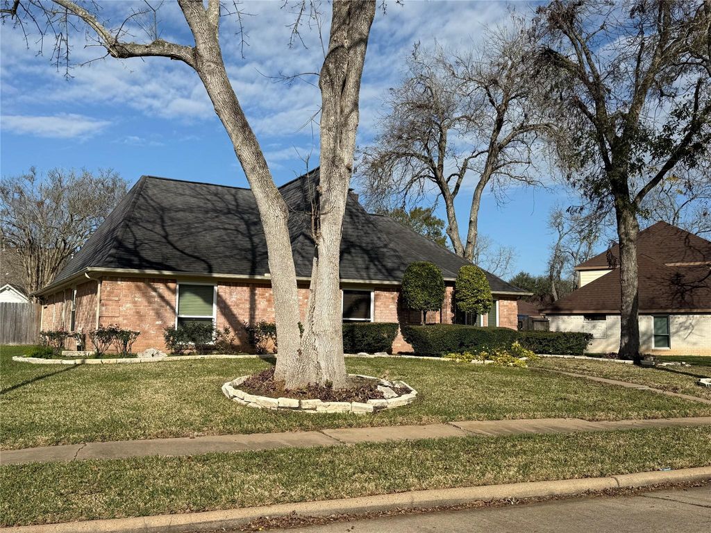 Nestled beneath gorgeous, mature trees in the heart of Pecan Grove, this unique one-story home offers timeless character and versatile living. A grand double-door entrance welcomes you inside to a thoughtfully designed floor plan featuring rich interior brick accents and subtle level changes that create architectural interest throughout. The den is elevated for a cozy retreat, while the living area and office are gently stepped down, providing distinct yet connected spaces ideal for everyday living and entertaining. With 3 to 4 spacious bedrooms, this home offers flexibility to suit a variety of lifestyles. The true highlight awaits outdoors an exceptional backyard retreat complete with a covered patio featuring a wood planked ceiling and an outdoor kitchen, perfect for hosting gatherings or enjoying peaceful evenings at home. Combining charm, functionality, and outdoor living, this property is a rare find in one of Pecan Grove’s most desirable neighborhoods.