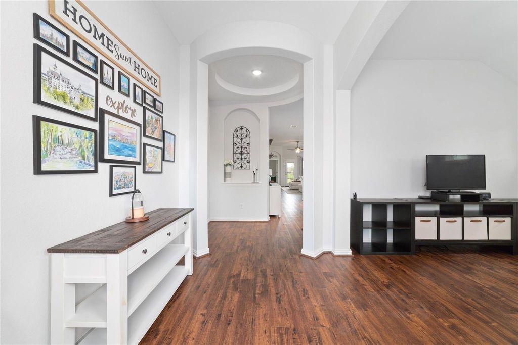 Gorgeous Gehan home in the gated section of Tamarron Community, located on the lake, with a stunning view! Amazing brick and stone elevation! As you enter this beautiful home, you are greeted with rich wood look luxury vinyl flooring and a grand rotunda entrance. Large formal dining room with tons of windows for natural light, wonderful open floor plan, great for entertaining. Open kitchen with granite counters, an undermount sink, lots of cabinet and counter space. Large living area with a beautiful view of the lake! Private study also with a fabulous view of the lake. Primary bedroom with bay windows for extra space. Can you imagine waking up to a gorgeous view of the lake every morning? Primary bathroom with double sinks, garden tub, and separate shower, and walk in closet, two large secondary bedrooms. Backyard with nice sized cover patio backing up to the lake and walking trail. This home will not last! Location, location, location!