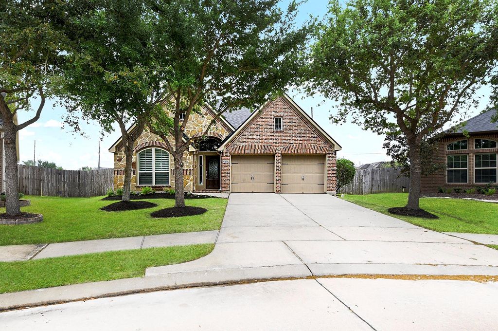 This stunning single-story home sits on an expansive 12,500+ sq ft cul-de-sac lot featuring 4 bedrooms, including a luxurious primary en-suite, a private junior en-suite and two additional guest bedrooms with 3 full bathrooms. Inside, you’ll find a versatile layout that includes a formal dining room, a bright breakfast area and a dedicated home office. The open-concept design creates a seamless flow throughout the main living areas, enhanced by consistent tile flooring throughout with no carpet. The large island kitchen opens to the living and breakfast rooms, perfect for gathering and entertaining. Enjoy abundant counter space, a breakfast bar, and ample cabinetry, all complemented by beautiful views of the backyard. Unwind in the private owner’s suite, featuring peaceful backyard views. With no back neighbors, this home offers exceptional privacy and a quiet outdoor setting. Don’t miss your chance to own this exceptional home—schedule your showing today! Roof was replaced a year ago.