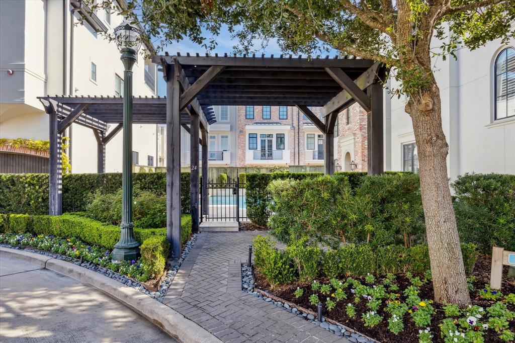 Welcome to this stunning custom-built home located in the gated Southside Circle community, designed for a lock-and-leave lifestyle. This meticulously maintained 3-story home offers 4-bedrooms, 4.5 bathrooms, and a spacious 3 car garage equipped with an electric car charging port. Step inside to find 12-foot ceilings 1st floor, 11' on 2nd floor and 10' on 3rd floor. Hardwood floors throughout. NEW LENNOX gas furnace and electric a/c on upper two floors. The chef's kitchen features high-end Miele appliances like oven range, steam oven, built-in coffee/expresso maker, combo microwave/convection oven. Brookhaven cabinetry, and under cabinet lighting. Enjoy a 3rd level balcony with ample room for outdoor cooking and dining. Additional highlights include a spa-like primary suite with an ensuite bath and two walk-in closets, a 3rd-floor media room with a wet bar and balcony access, and elevator to all floors. Close proximity to Medical Center, Rice University, Rice Village and Downtown.