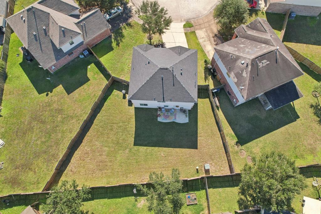 Over $30k in UPGRADES! This stunning two-story home sits on a large cul-de-sac lot in a desirable neighborhood. It offers an open-concept kitchen and living space, a spacious backyard, and plenty of room for the family. Features include a chef’s kitchen with ample cabinet/counter space, a breakfast room, a bright family room, an upstairs game room, a luxurious master suite with a walk-in closet, and 2 large additional bedrooms. The backyard is pool-sized with an extended patio. Community amenities include a covered picnic area, playground, and splash pad. Recent upgrades include a new roof with 25yr transferable warranty, interior paint, light fixtures, vinyl plank flooring, dishwasher (2024), new fence and gate (2024), hot water heater (2021). Shelving in the garage, refrigerator, washer, and dryer convey with the property. Ceiling fans have been added throughout. Additionally, the property features a water softener and reverse osmosis system (2014) and an extended patio (2015).