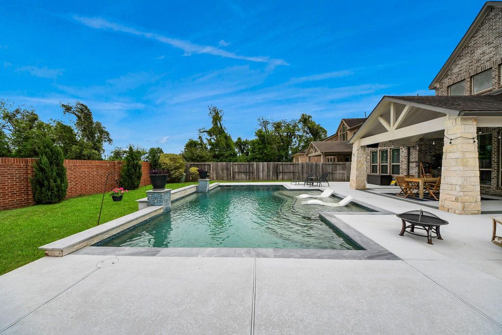 Welcome home! This stunning 4 bed/3.5 bath beauty in Sawmill features a WATERFALL POOL & is filled w/ LUXURIOUS FINISHES. Nestled on a cul-de-sac just mere minutes from Ridge Point HS, Thorton Middle & Leonetti Elementary. Upon entering, a sweeping staircase crowns the grand entry, while soaring ceilings & walls of glass frame the light-filled living spaces below. A striking chef’s kitchen anchors the home, featuring a dramatic quartz island, premium appliances & custom details. Upstairs, a huge game room & cinematic media lounge offer elevated escapes, complemented by beautifully appointed secondary suites w/ private baths. Primary retreat is a study in calm sophistication, paired w/ spa-like finishes. Outdoors, a resort-caliber setting awaits! COVERED PATIO w/ exposed beams, a CUSTOM POOL w/ SUN SHELF & expansive decking for intimate evenings & lively gatherings. Seamlessly balancing scale, style & serenity, this home delivers an experience that feels elevated & effortlessly livable!
