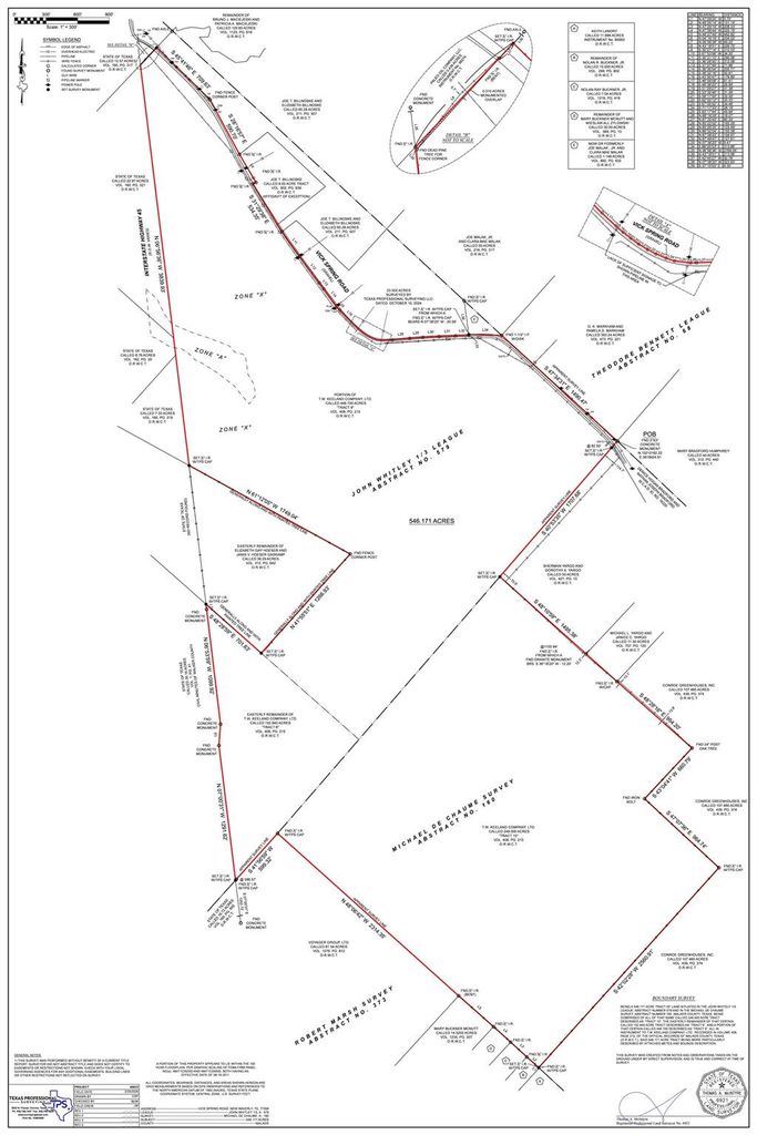 546 acre tract in the path of growth along Interstate 45 between Huntsville and Willis. Approx. 6,229 ft of I-45 frontage offers exceptional long-term visibility. No current feeder/access from I-45, but 5,474+ ft of frontage on Vick Springs Rd provides direct access for immediate use or phased development. Just 63 miles to Houston, 10 miles to Huntsville, and 8 miles to Willis. Timber exemption in place for low taxes and holding costs. North portion lies within Huntsville ETJ, offering future development/annexation potential. Rare large tract with scale, visibility, and access—ideal for investment, subdivision, or long-term development play. Large contiguous acreage along I-45 is increasingly scarce, making this a strong candidate for a future master-planned development, or phased sell-off strategies to maximize value.