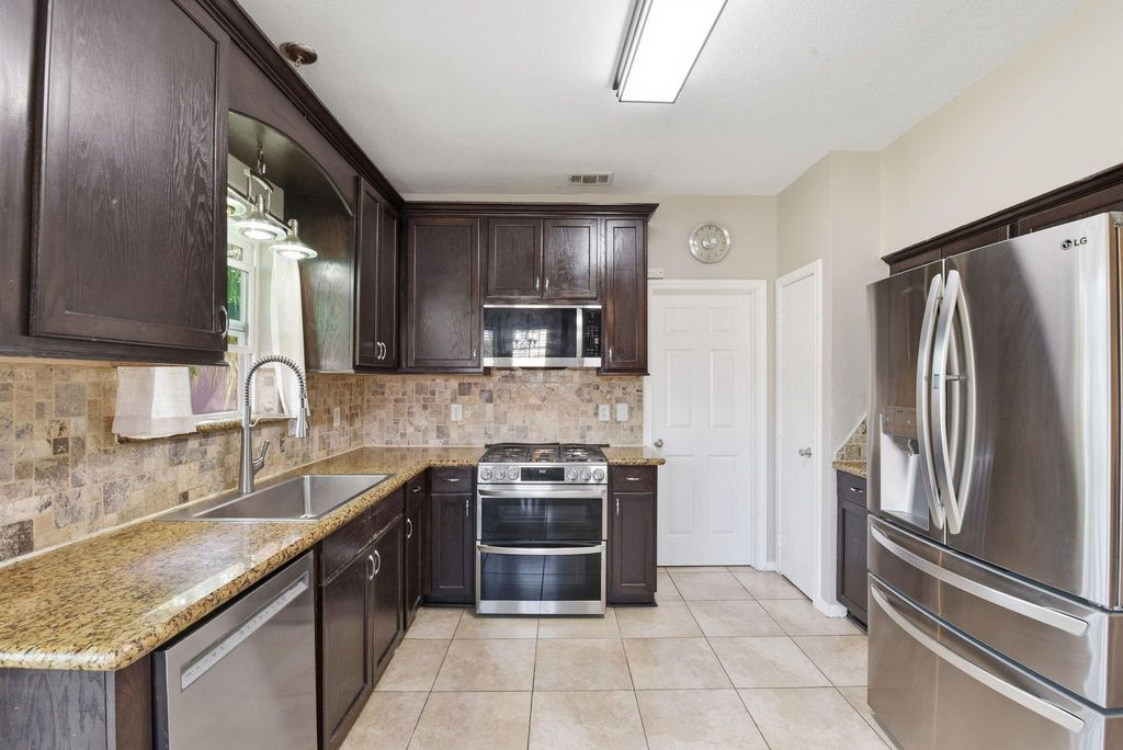 Space, updates, and backyard privacy come together in this beautifully maintained Windsor Forest two-story. Designed with a functional layout, the home features an expansive living room with a cozy fireplace and abundant natural light. The kitchen shines with granite countertops, brand new stainless steel appliances, rich cabinetry, and a stylish backsplash—perfect for everyday living and entertaining. Upstairs, the spacious primary retreat offers a jetted soaking tub, separate glass shower, and generous windows. Step outside to enjoy the large backyard with no rear neighbors, plus a brand new patio composite wood deck & patio ideal for relaxing or hosting guests. Conveniently located near I-45 and Grand Parkway 99 with easy access to shopping, dining, and daily essentials.