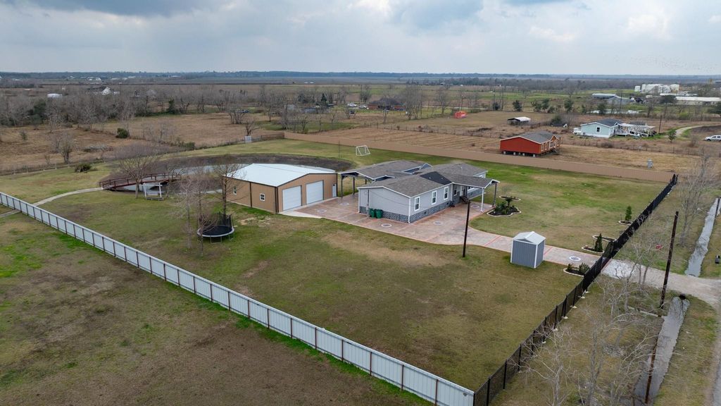 WHAT A FIND !! You are going to love this property. So much to offer. As you enter onto the property ... you drive through a gate that is ready for automation. You eyes will immediately be drawn to the LONE STAR THEME Stamped double wide and long drive way that takes up to the covered drive at the front door and wraps around to the back side of the home to enter a 4 car attached carport port. How impressive !! BUt it doesn't stop there. it drives up to an Oversized 6 car detached garage. Step out and Look around... you see this 2.08 acre property is completely cleared and fully fenced.. Behind the Garage you will find A huge Pond is has been dug out and waiting to be filled. The property has a 5 bedroom Manufactured home that was attached to slab and fully skirted. BUT if it's your desire to build your dream home .... there is plenty of room to build. Property Has a new aerobic septic system. Don't miss this opportunity... This ONE is a HIDDEN GEM ...