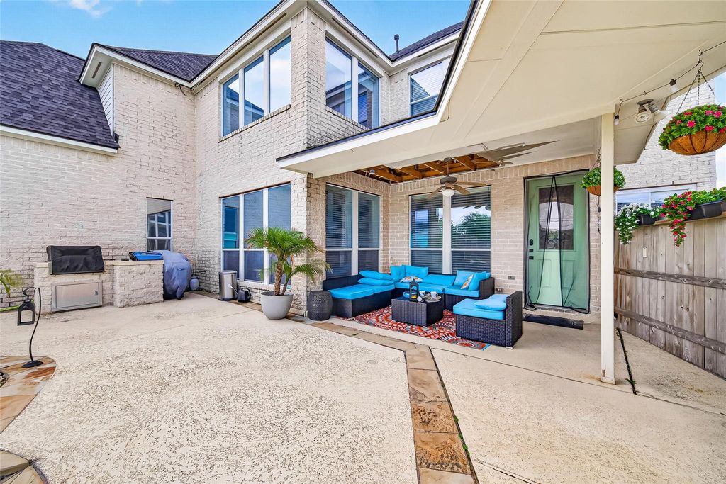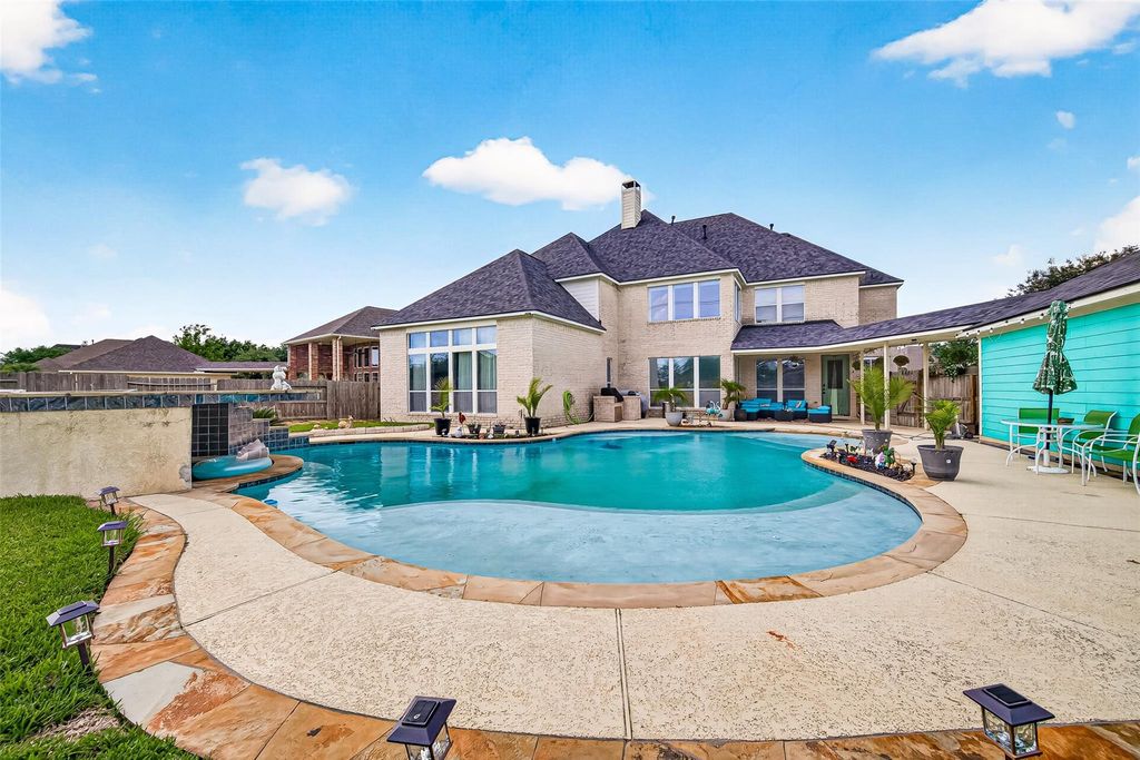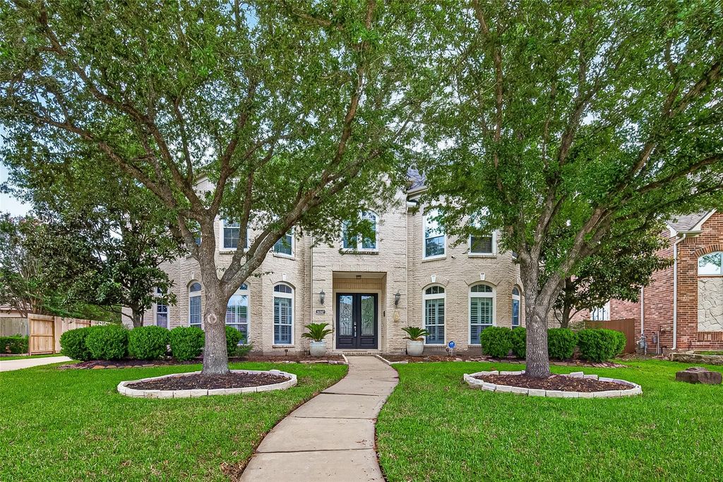 Gracefully situated on a quiet circle in Cypress Creek Lakes, this luxurious 5,792 sq. ft. Perry Home defines elegance. The grand entrance opens to a breathtaking rotunda foyer with cathedral ceilings and 2 striking round stairs that connect the family room and foyer in a dramatic display of architecture. The open-concept layout features a gourmet kitchen with a new cooktop, dishwasher, microwave, and butler's pantry. The massive 1st-floor primary retreat offers a private fireplace and spa-like bath, while a second primary suite upstairs provides perfect flexibility. Storage is abundant with several walk-in closets throughout. Work from home in the French-door study or enjoy the upstairs game and media rooms. Recent upgrades include a NEW ROOF (2023), new carpet, and fresh paint. The backyard is a tropical oasis with a saltwater pool, rock grotto spa, and new fence. Complete with a 3-car garage and top-rated schools, this is luxury living at its finest.