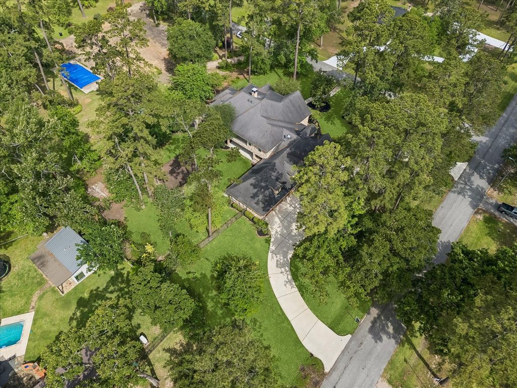 Gorgeous custom-designed home on a 1-acre lot in upfront Kingwood Forest Cove with easy access to Hwy 59. This home lives like a one-story with 3 bedrooms down, each with en suite baths, and is ideal for next-gen living. Enter through stately double doors into a grand foyer. Formal dining, private office, and a spacious family room open to a chef’s kitchen with a large island and a separate back/prep kitchen. Bonus/yoga room, oversized utility, and mudroom. Beautiful wood floors and craftsmanship throughout. Upstairs offers 2 additional bedrooms with en suite baths, plus a media room, game room, and bonus room. Oversized 3-car garage. Large covered patio with outdoor kitchen overlooking the expansive lot. Separate workroom could be converted with AC into a sunroom, gym, or apartment. The home has never flooded.