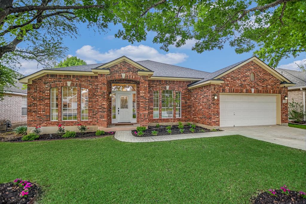 Pottery Barn pretty! Stunning, remodeled, single-story ranch in the Meadows of Brushy Creek. 5BR + office, beautifully renovated kitchen w/ quartz counters, blue-accented island, subway tile & 5-burner gas range. LVP flooring (2024), plantation shutters (2025), 5th BR addition (2025). Oversized primary suite, en suite guest room, media/playroom w/ wainscoting. Covered patio w/ fans & retractable sunscreen. Roof & HVAC replaced 2024. Walk to Pepper Rock Park. Round Rock ISD. Move-in ready — come see it!
