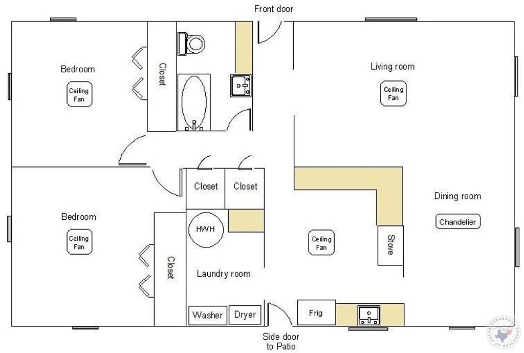This move-in-ready home has been completely remodeled. It has a nice living room-dining room combination, and a large kitchen with lots of cabinets and drawers. There is a separate laundry room with space for a freezer. Each of the two big bedrooms can easily hold a king-size bed, and has a large, double closet. The bathroom has a new, chair-height toilet.There is a private patio, and a fabulous workshop with electric and a built-in workbench. The fenced-in backyard has a large barn for extra storage. The commercial-grade HVAC system keeps your utility bills really low. Also, this home has only had two owners, and it's never been smoked in.This listing includes virtually staged & virtually cleaned photographs. Digital furniture and decor have been added and removed to help you visualize the space. Some items are not present in the physical property. Original photographs are available upon request.