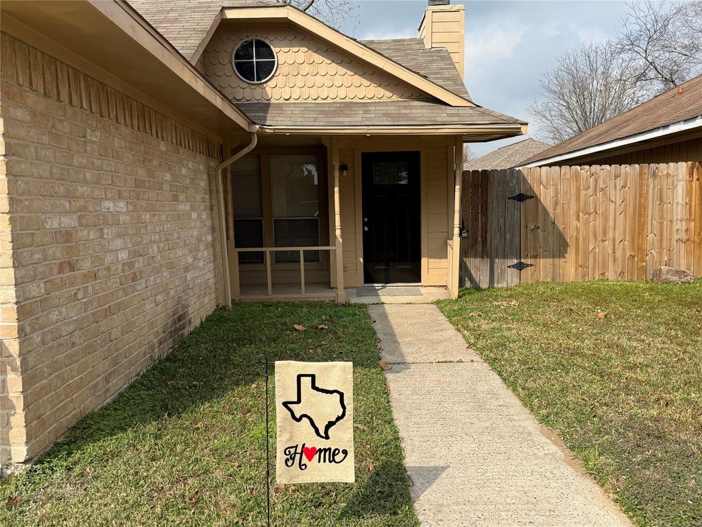 Welcome to this charming starter home in Cypress Trails Timberlane, Spring TX. The kitchen boasts granite look counters, white cabinetry, and a breakfast bar. Relax in the cozy living room with vaulted ceilings and a wood burning fireplace. Step outside through the sliding glass door to your private backyard. Upgraded bathrooms feature marble top vanities and faucets. Make this your dream HOME with low HOA and tax base. A perfect opportunity for first-time homebuyers looking for a comfortable and stylish living space in a desirable location. Recent A/C and Water Heater. Minutes from IAH Airport, 1960 and Grand Parkway. Enjoy a short drive to Mercer Arboretum Botanical Gardens, Old Town Spring shopping and restaurants.