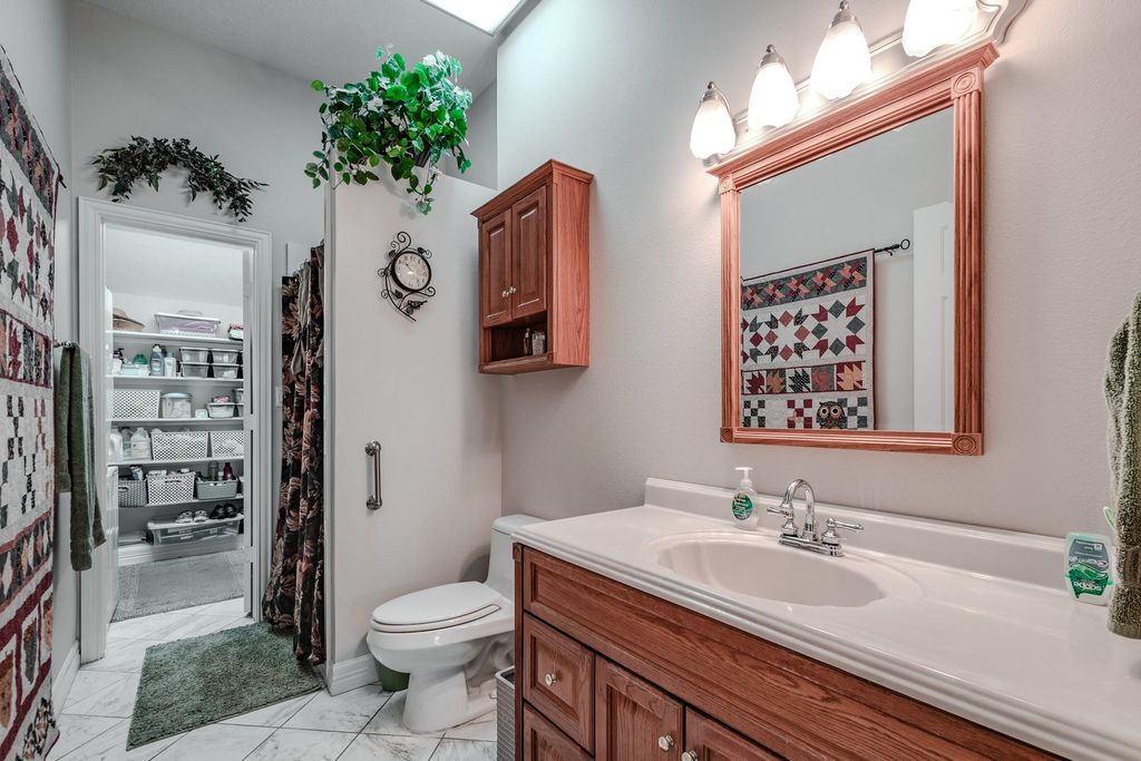 Beautiful well built custom home on oversized lot (just over an acre) located in North Point, a gated community. This custom 3124 sqft. home boasts 3 bed/4.5 bath, 4 car garage, included is a fully built out garage apartment with private garage entrance, large kitchen, full bath and an excessive amount of storage, nearly 1000 sqft! Stunning entry with soaring ceilings, marble floors, formal dining and huge family room with custom touches throughout. Chef's gourmet kitchen with granite countertops, warming tray, island with prep sink and much more! XL Christmas tree storage room, walk in pantry, indoor laundry room with sink and built in ironing board. Ample amounts of storage throughout the home! Handicap bathroom in middle bedroom, entire home is wheelchair accessible. Water well and aerobic system. Low tax rate. You're going to love this perfect home for entertaining family and friends for many years to come!