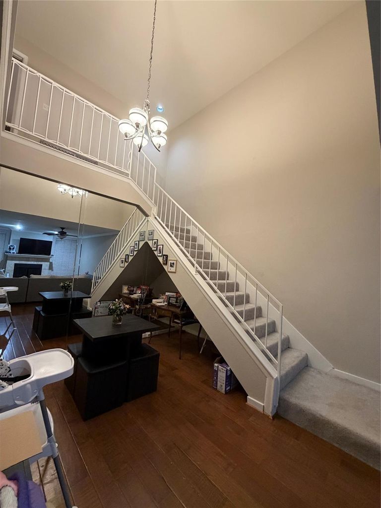 Lovely remodeled Condo in a small 35 Unit Complex. End Unit. Your front door is steps away from the Community Pool. The Living/Dining Room has premium Wood Floors, wood burning Fireplace, and a soaring 18' open ceiling with a new Chandelier. This contemporary Unit has been tastefully painted with neutral colors. The 1/2 bath has upgraded Wallpaper & the Wetbar has new Granite. New Kitchen Cabinets with soft close Hinges, all Stainless Appliances, New Granite, New Sink & Faucet. 2 Primary Bedrooms upstairs w/ Ensuites, Walk-in Closets, New Carpet & 2" Blinds, 1 Primary has a Balcony. Ceiling Fans in L.R. & Bdrms. New Washer & Dryer, New Cabinets & New Flooring in the Laundry Rm. 2 car attached Garage w/ Storage.