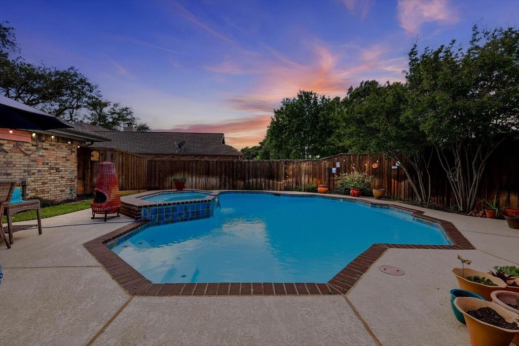 Beautiful one-story home with Pool and Spa in the desirable Pitman Creek North subdivision of Plano, awaiting its new owners! Top rated Plano ISD. This warm and inviting home blends comfort, warmth, and everyday functionality. Featuring 3 bedrooms, 2 full baths, 2 living areas, 2 dining areas and a 2-car garage. Wood floors throughout the house except tile flooring in the kitchen and 2 bathrooms. No carpet in this house. Fresh Paint throughout living, dining and kitchen areas. Large windows fill the space with natural light, while the brick fireplace adds a cozy touch to the main living area. Large Master bedroom suite offers dual vanity, a separate shower, his and her closets. Recent updates include new Microwave (2026) and dishwasher (2025), refinished swimming Pool and Spa (2025). Steps to Hackberry Park. Close to Highway 75 and President George Bush Turnpike, and just minutes from Legacy West, The Shops at Legacy, and The Shops at Willow Bend. Must see - Don't miss it!