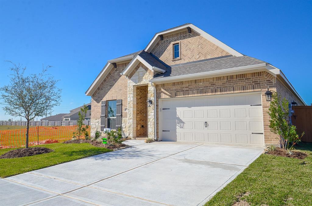 Stunning One Story, New Construction home and NEVER lived in! Enter into the extended entry that leads past the private office to the open kitchen, dining area and family room. Kitchen features deep walk-in pantry and generous island with built-in seating space. Dining area features curved wall of windows. Family room features a wood mantel fireplace and wall of windows. Primary suite includes bedroom with wall of windows. Double doors lead to primary bath with dual vanity, garden tub, separate glass-enclosed shower and oversized walk-in closet. Abundant closet space and large windows add to this spacious four-bedroom design. Enjoy the Covered backyard patio and spacious backyard. Convenient Mud room off of the two-car garage.