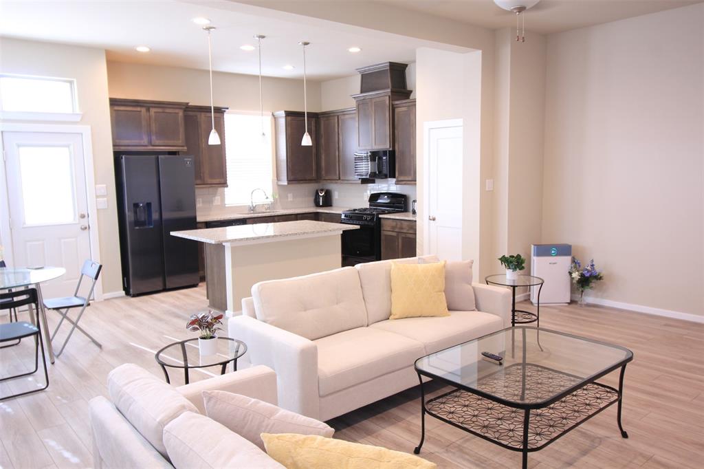 Built in 2021, 6 months home, exquisite contemporary/modern townhouse in master planed Bridgeland area, features 3 bedrooms, 2.5 baths, flex space, and a 2-car attached garage. An open concept living area is open to the kitchen and a casual dining area with high ceiling, large windows and comfortable Luxury Vinyl Wood floors. The upstairs hallway leads to a sizable flex-room; two-bed rooms with Jack & Joe full bathroom and walk in closets; the master en-suite offers a large bedroom, a bathroom consisting of a separate tub and a shower, double sinks and a separated toilet room, large walk in closet. Outdoor resort-style amenities, including Tennis courts, fishing lakes, green space, parks, junior Olympic-size pool, lap pool, tower slides, gym, walking/biking trails, and a dog park. Yard mowing, as well as all Bridgeland amenities included. current furniture in the house is optional. Refrigerator , Washer and dryer included.