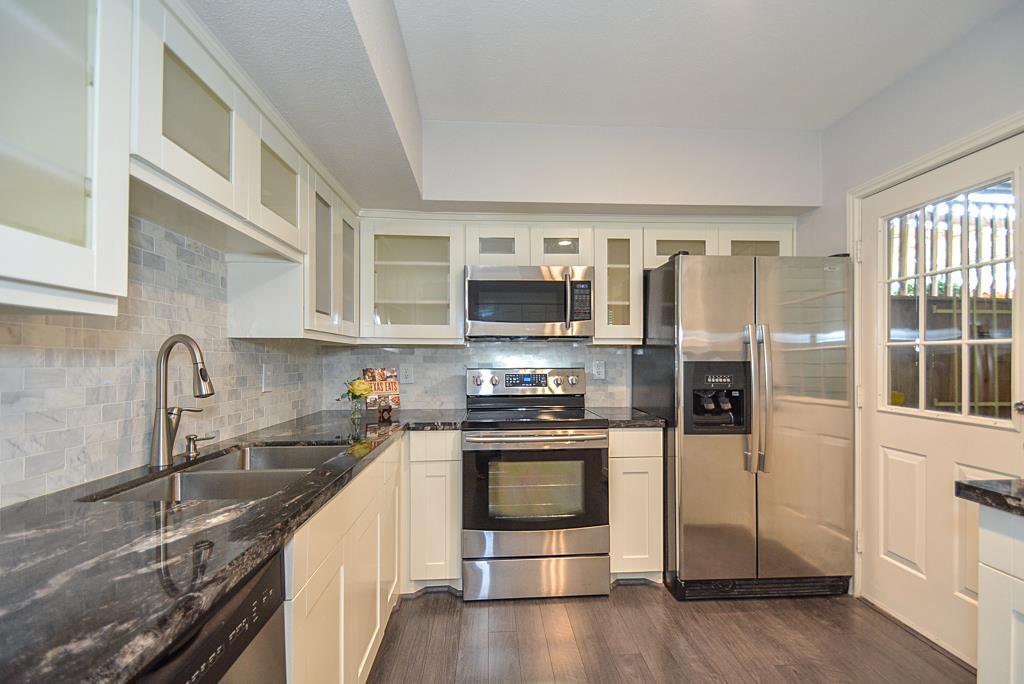 Beautifully remodeled 2 bed, 2.5 bath, 2 car garage, END UNIT town home in the heart of the Galleria. First floor has laminate wood flooring throughout, large open living room with lots of natural light, kitchen with gorgeous granite, SS appliances & custom cabinets, dining room & laundry. The wooden staircase leads to two large bedrooms each boasting private bathrooms with marble counters, custom cabinets & tile work. Bonus room accesses your own balcony overlooking the area pool. A must see!