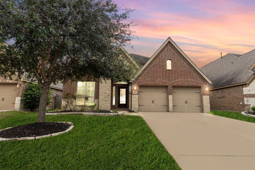 Elegant one-story Perry Home in the desirable Ventana Lakes community. Stone & brick elevation. All-brick exterior with a spacious covered patio on a private lot perfect for sunset views. Grand entry with soaring coffered ceilings & stunning large tile flooring throughout. Full glass French doors open to the private home office. Dramatic family area with high ceilings and walls of windows flowing into the gourmet kitchen and casual dining! Timeless design meets everyday comfort. Gourmet kitchen features beautiful tall cabinets, chic backsplash, under-mount cabinet lighting, stainless steel built-in appliances, large eat-in island, deep undermount sink, gorgeous granite countertops & more! Private guest suite with its own bath. Tucked away is the primary suite with high ceilings and a spa-like bath boasting his and her private vanities, granite counters, deep soaking tub, and a large shower! Two additional guest rooms & full bath with granite counters! Energy Star rated! No flooding.