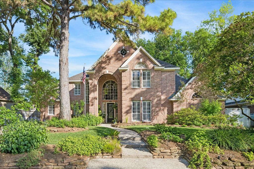 Nestled on a quiet cul de sac next to a peaceful greenbelt, this meticulously maintained home blends elegance with comfort. Exceptional curb appeal defines this elegant brick residence, highlighted by a prominent flagpole, landscape lighting and a tranquil front yard fountain. The welcoming entry is bordered by the executive study & gracious dining room with the living room that all enjoy a view of the heated pool with waterfall, covered patio & spacious yard. The kitchen/breakfast and family room with a wet bar are the heart of the home & ideal for family & friends to gather. The private primary bedroom suite has an upscale bathroom, a walk-in glass shower, soaking tub, 2 vanities & large closet. 3 spacious bedrooms, 2 full bathrooms & a Game room on the 2nd floor. Custom built-ins thru out the home. Walk up stairs attic in 3 car garage. Whole-Home Generator. Greenbelt leads to Willow Creek Elementary. Also zoned to Riverwood Middle & Kingwood High.