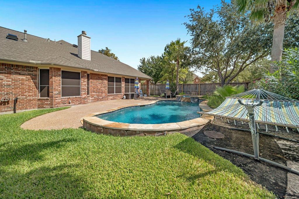 BACKYARD OASIS with STUNNING POOL + SPA on a spacious corner lot in Village Creek, zoned to the award-winning Tomball ISD! This home is packed with updates, including a new roof, A/C units, tankless water heater, water softener system, and solar screens. This retreat is truly move-in ready. The interior features a gourmet island kitchen with granite counters, stainless steel appliances, 42” cabinetry and beautiful backsplash. An enormous family room offers an entertainment niche and cozy gas fireplace, The first-floor primary suite boasts a bay window and crown molding for added elegance. Upstairs, enjoy a large game room and media room, plus oversized bedrooms. A private study with French doors and a formal dining room provide flexible living and work-from-home options. With modern upgrades, energy efficiency features, and an entertainer’s backyard, this home is the complete package. Come see this beauty in person!