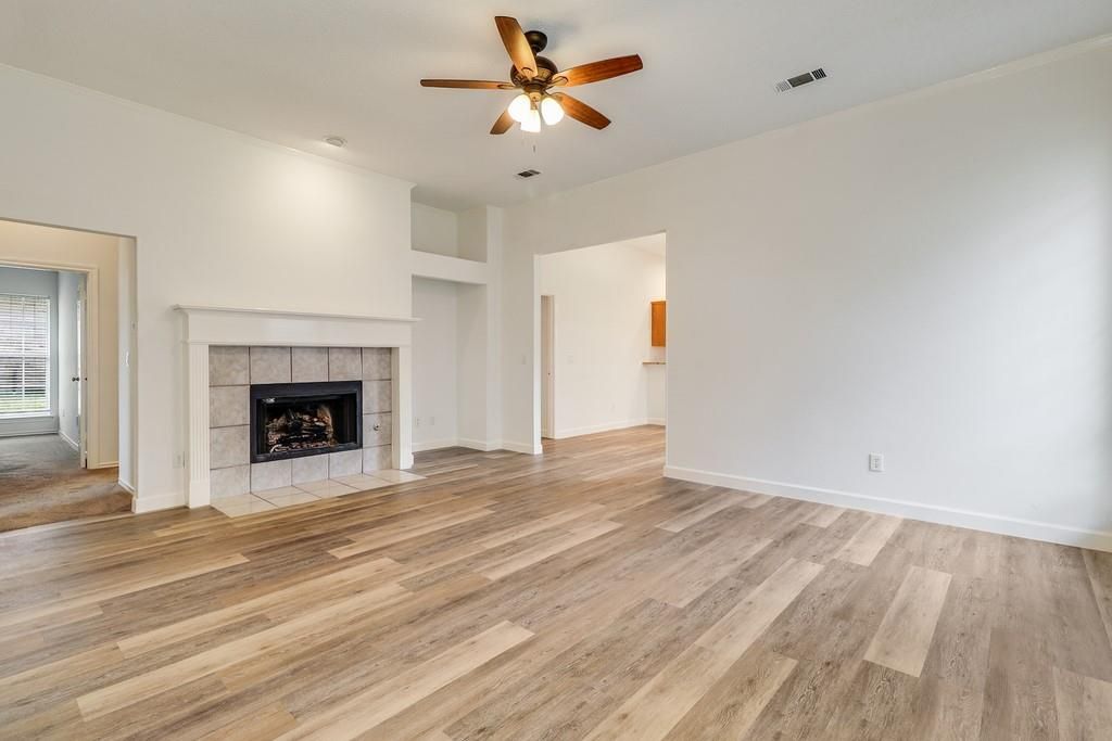Hard-to-find one story home in prime Frisco location within close proximity to shopping and restaurants! Ready for new owners with fresh paint, recently installed vinyl plank flooring in living, breakfast, kitchen, and utility areas. Wonderful view from the breakfast area to the inviting covered patio and large fenced backyard for seasonal enjoyment. Spacious Primary Bedroom features vaulted elevated ceiling, ensuite private bath with custom tile, large shower with designer rimless shower door and custom shower head, large soaking garden tub, and over-sized walk-in closet. Good sized yard features sprinkler system and wood backyard fence for privacy.