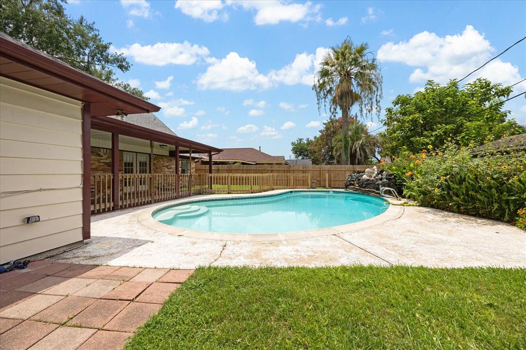 Wonderful 5 bedroom home in Pasadena with a pool. Wood look tile downstairs, updated carpet upstairs. Interior freshly painted 2 years ago and exterior recently painted 4 months ago. Foundation repaired 2022, roof 2023, a/c and heat 2022, diswasher 2025. Washer/dryer/fridge stay with the house. Kitchen remodeled and downstairs bath updated. All room sizes approximate, please independently verify.