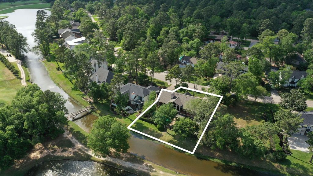 Spectacular Golf Course Lot with one of the best golf course views in The Woodlands. Inside or Outside you have choices to watch the "Greats of Golf" at the annual PGA Seniors Insperity Golf Tournament from one of two outdoor balconies, the downstairs patio and pool areas or from the abundance of windows overlooking the golf course from the inside. Uniquely designed, this well-maintained and continually upgraded home offers resort-style living at its best. In addition to 3 bedrooms, 3.5 bathrooms and a study with a Murphy bed and a 3-car tandem garage, in the backyard you'll have a recently resurfaced pool with spa and sheer descent waterfalls, an outdoor kitchen/bar under a covered Pergola, separate boulder rock waterfall pond, sauna and a mosquito misting system to assure your private home resort is truly a "dream come true" home.