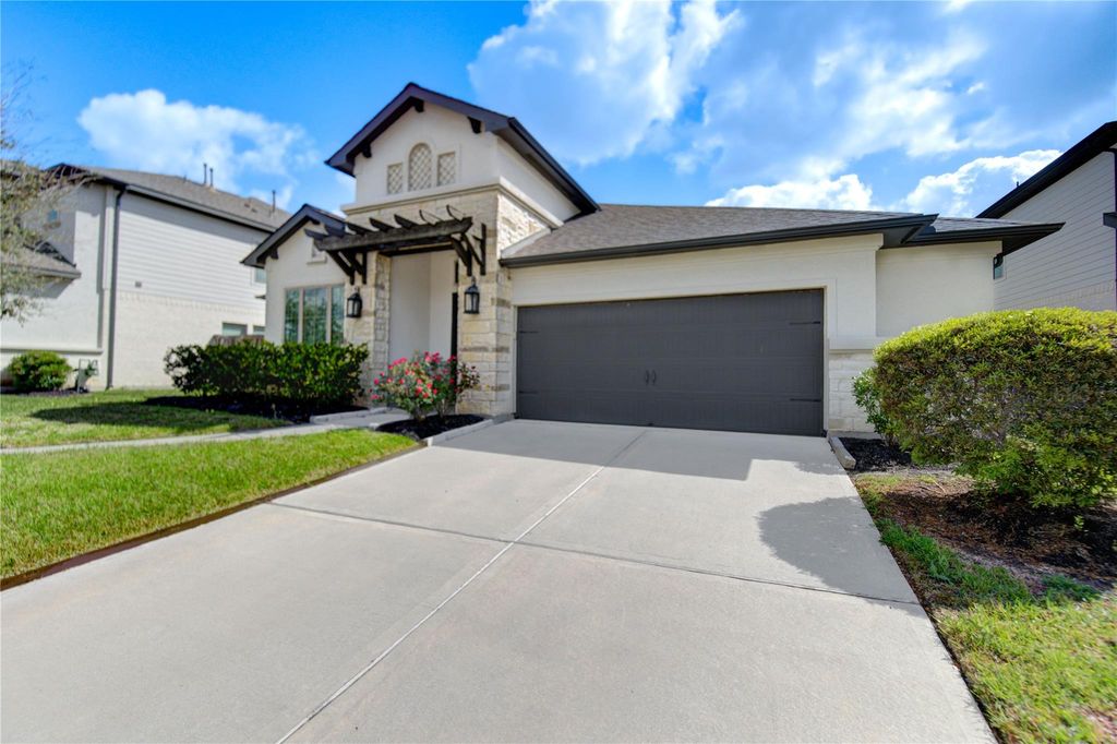This beautiful single story home offers 4 bedrooms, 3.5 bathrooms, and a thoughtfully designed open concept layout ideal for modern living and entertaining. The kitchen seamlessly opens to the breakfast nook and spacious family room, featuring a wall of windows that fills the space with natural light and provides views of the covered patio.The luxurious primary suite includes an en suite bath with dual vanities, a freestanding soaking tub, a separate glass enclosed shower, and a walk in closet. Three secondary bedrooms are well appointed, including one with its own private bathroom. Additional highlights include a versatile gameroom/flex space, a dedicated office, & 2 car garage with extened flex space. Included in the rental: Refrigerator, lawn maintenance, & pest control.