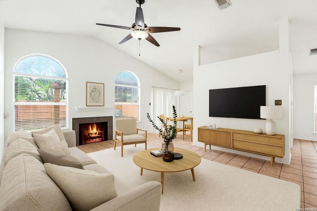 Experience the perfect blend of style and functionality with a seamless open floor concept in the quiet and sought after Quail Creek community. The heart of the home is accentuated by soaring vaulted ceilings and low-maintenance tile flooring, a fireplace and large windows that bring in plenty of natural lighting. The airy atmosphere makes the home feel even more expansive and inviting. The master bedroom has a 5-piece bathroom that includes a garden tub, double vanity, separate shower and his & her closets. 2 additional bedrooms share a full bathroom. Step outside to your private backyard retreat. The oversized tile patio is perfect for entertaining, complete with a stylish pergola cover that provides the ideal balance of sun and shade for summer BBQs or quiet morning coffee. Experience the perfect balance of tranquility and convenience, just minutes from shopping, dining, and major highways.