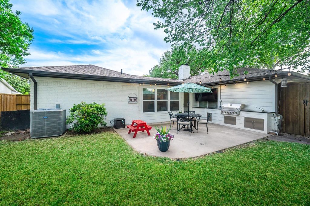 Welcome to 7705 El Pensador Dr, a beautifully updated home in the desirable Estates West community of Far N. Dallas zoned to highly rated Richardson ISD & Bowie Elem. Situated on a quiet corner lot along a wonderful, interior street, this home offers exceptional curb appeal w lush landscaping+mature trees. The exterior was transformed in '24 w Hardie board siding, cedar columns, a stunning iron front door & a fresh creamy white paint palette for the brick. Windows were replaced in '18 & roof in '17 adding to peace of mind. Inside, you’ll find a light-filled, open-concept layout w crisp neutral tones+charming vintage brick flooring flowing through the main living space. The spacious living room features a beautifully updated fireplace w a cedar mantel & offers flexible zones for relaxing, entertaining or creating a reading nook or game area—all seamlessly connected to the fully remodeled kitchen ('24). This chef’s kitchen boasts custom cabinetry, marble countertops+backsplash, a massive island w abundant storage, SS appliances including a gas range+designer drawer microwave & stylish lighting. Additional living & dining spaces provide incredible versatility, including an oversized dining area perfect for hosting & a separate bonus room w hand-scraped hardwood floors ideal as an office, playroom or gym. The private primary suite offers ample space, dual walk in closets, a flexible nook area & a fully renovated ensuite bath ('21) w dual vanities, quartz counters & a large frameless glass walk-in shower. 2 secondary bedrooms feature new carpet ('24) & crown molding while the hall bath was completely updated in '24 w modern finishes. Step outside to enjoy the spacious backyard w plenty of grass for fun & hobbies, a large patio, 8-foot cedar board-on-board fence PLUS a custom outdoor kitchen completed in '24 w a grill, sink, leathered granite countertops+mounted TV. This move-in-ready home truly has it all & has been loved by the same family for the past 12 years. H