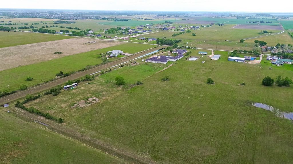 Welcome home to 10 unrestricted acres • 3,200 SF insulated shop • Backs to Needville ISD. 2 bed, 2.5 bath home (1,800 SF, built 2005) paired with a 3,200 SF insulated shop designed for workspace, storage, or equipment use. Shop features three 10’x10’ overhead doors, complete spray foam insulation, office/extra room, bathroom, washout station, dedicated breakers, and two AC units. Covered shop porch (40’x40’). Unrestricted 10-acre tract with well, aerobic septic, rain-fed pond, open hay field, and multiple parking areas for vehicles, trailers, or equipment. Property backs to county-owned Needville ISD land. DirectTV access and exterior cameras included. Home includes kitchen with breakfast bar, pantry with barn-style doors, recessed lighting (2024), and updated appliances. Primary suite with dual closets, vanity, and walk-in shower. Oversized laundry with new water heater. Ample attic decking for storage. Schedule your private showing today.