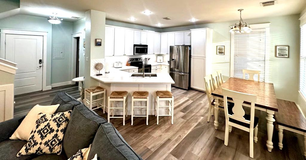 Beautifully updated 4-bedroom, 4-bath coastal cottage located in the Pointe West community. This spacious home features an open-concept living, kitchen, and dining area with abundant natural light and coastal finishes throughout. The recently remodeled kitchen includes new quartz countertops, microwave and range. New flooring has been installed throughout the home, enhancing its modern appeal. Each bedroom offers generous space, and all four bathrooms provide comfort and privacy. Exterior features include covered decks ideal for relaxing and enjoying Gulf breezes. Major improvements include a new AC unit installed in 2022 and a new roof completed in November 2025. The property offers convenient access to beach entry points and neighborhood amenities.