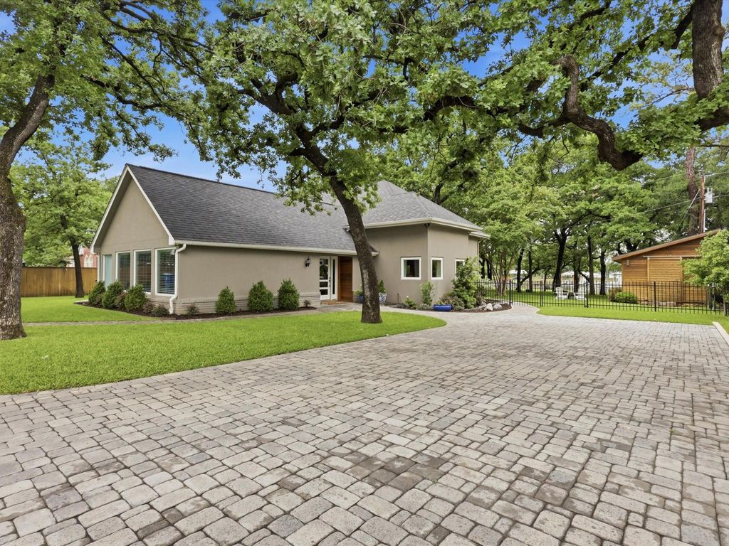 11761 Oakwood Ln is listed for sale at $ 1,299,000. The Residential - Single Family property has 4 bedrooms, 3 Full Bathrooms, 1 Half Bathroom, 3340 square feet and was built in 1950. The lot size is 1.16 Acres. ##BR##Experience refined lakefront living on a breathtaking, heavily treed private acre along the shores of Eagle Mountain Lake. Tucked behind a private drive, this exceptional property offers unmatched privacy, serene natural surroundings, and sweeping water views from nearly every vantage point. Completely reimagined with sophisticated, high-end finishes, this 3,340-square-foot residence seamlessly blends modern elegance with everyday comfort. Open-concept design features a grand living area anchored by a fireplace and walls of windows that capture the picturesque lake views, creating a seamless transition between indoor and outdoor living. At the heart of the home is the completely remodeled gourmet kitchen, showcasing stunning leathered granite countertops, a premium Wolf range, walk-in pantry, and an oversized breakfast bar—perfect for casual dining and entertaining. Thoughtfully designed for both comfort and flexibility, the home offers four bedrooms, including two primary suites on the main level—ideal for multigenerational living or hosting guests with ease. Upstairs, you’ll find two additional bedrooms, a full bath, a versatile flex space, and game room—perfect for entertainment and relaxation. Step outside to your private outdoor retreat, where a spacious covered deck and fully equipped outdoor kitchen set the stage for unforgettable gatherings. Relax in the hot tub, unwind in the charming swing seating, and take in the tranquil waterfront setting. Designed for the ultimate lake lifestyle, the property features a private boat dock with lift, dual jet ski lifts, and a dedicated ramp for effortless access to kayaking and paddleboarding. Three-car garage, additional parking, and a basketball area provide ample space for recreation and guests. Renovated with energy efficiency in mind, this move-in-ready home offers a rare blend of luxury, functionality, and tranquility. Waterfront retreat—perfect for creating unforgettable moments with family and friends.
