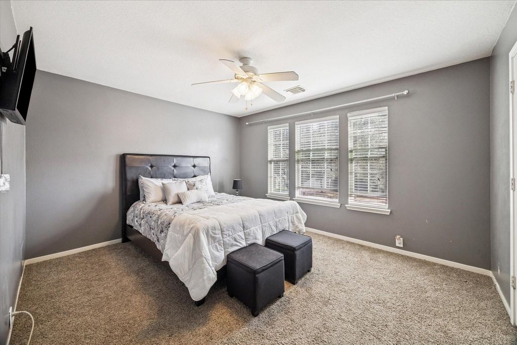 Well-maintained two-story home in a gated community featuring 3 bedrooms and 2.5 baths. Highlights include a cozy fireplace, dining area, stainless steel appliances, and a spacious living area ideal for family gatherings. Large primary suite with walk-in closet and dual sinks. Nice-sized backyard perfect for entertaining. New roof approximately 3 years old. Community amenities include a pool and pickleball court.