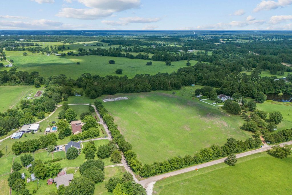 Rare opportunity for a level 10 acre site for your custom dream home! This unique property has 30 years of hay being harvested on it and is prime for horses! Close to downtown New Waverly amenities but private surrounded by other farms and right next door is a flower farm! The property features a 5000 sq ft concrete slab that is so versatile and would make a great place for a barn. there is small creek on the back side of the property. Easy access to I-45 for a quick commuting.