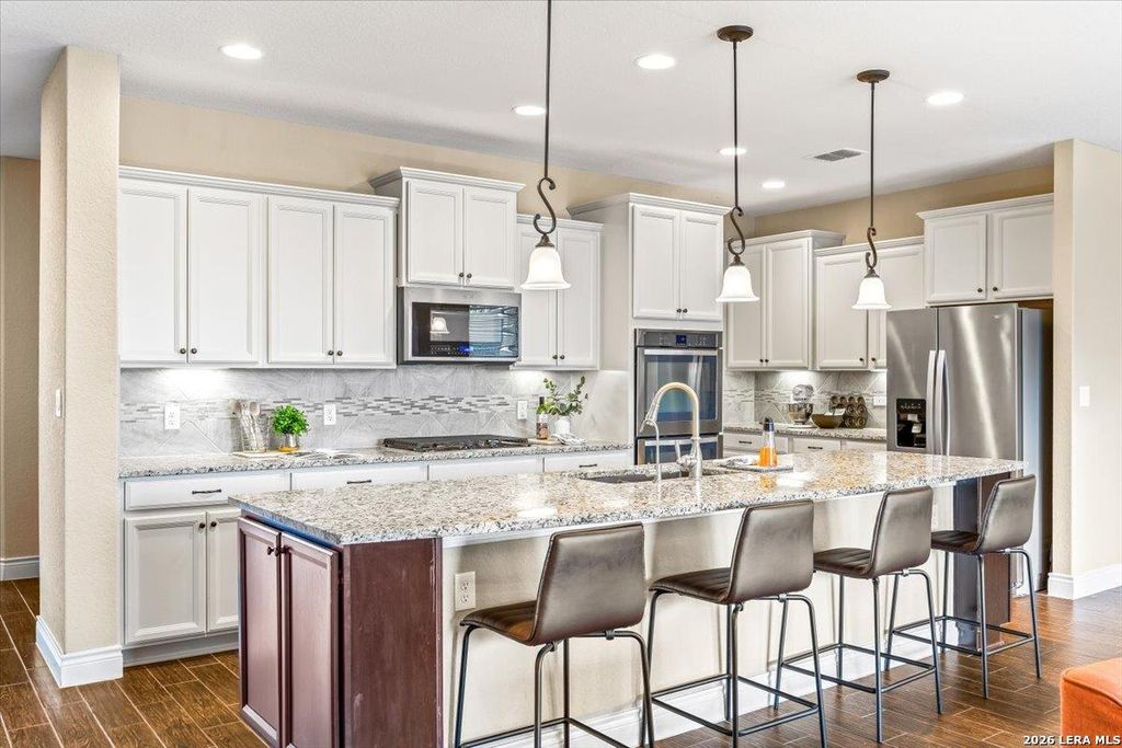2930 Bright Skies is listed for sale at $ 599,900. The Single-Family property has 4 bedrooms, 3 Full Bathrooms, 1 Half Bathroom, 3549 square feet and was built in 2017. The lot size is 0 Square feet. ##BR##Beautifully maintained home in the gated Heights of Indian Springs, located in North San Antonio along the 281 corridor and zoned to Indian Springs Elementary and Pieper High School in highly acclaimed Comal ISD-with NO city taxes. This thoughtfully designed 4-bedroom, 3.5-bath home with study, gameroom, and media room offers a highly functional layout and features a rare tandem 3-car garage, providing exceptional space for extra vehicles, storage, a home gym, or workshop. From the moment you arrive, you’ll notice the charming curb appeal, elevated entry, and inviting front porch, leading into a home filled with natural light, soaring ceilings, and rich wood-look tile flooring throughout the main living areas. The flexible floor plan includes the primary suite and a secondary bedroom downstairs, ideal for guests or multi-generational living, along with a private study with glass doors-perfect for working from home. The open-concept layout is ideal for everyday living and en