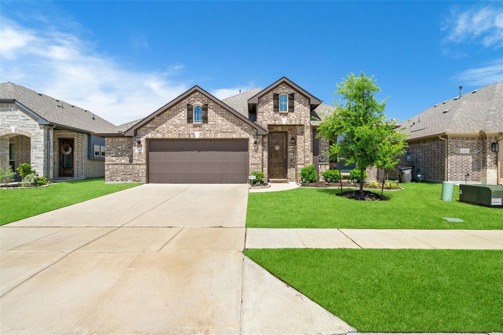 Welcome Home to this Gorgeous & Spacious 2022 Built Bloomfield Homes Cypress I floorplan in sought after Bear Creek, part of award-winning Grand Heritage master-planned development located near Lake Lavon! Featuring 4 spacious bedrooms and 2 bathrooms, it offers comfort and convenience throughout. The open floor plan centers around a stylish kitchen with a gas cooktop, granite countertops, and an oversized island that flows into the dining and living areas—perfect for everyday living or entertaining. The primary suite includes a walk-in closet and a private bath with double vanities, a separate shower, and a relaxing garden tub. Additional bedrooms provide flexibility, along with a dedicated home office behind French doors. Step outside to a covered patio & nice sized grassy fenced backyard, ideal for year-round enjoyment. An oversized 2.5-car garage adds extra storage and convenience. The community features amenities like a large resort-style pool and is designed for a, amenity-rich, lifestyle!