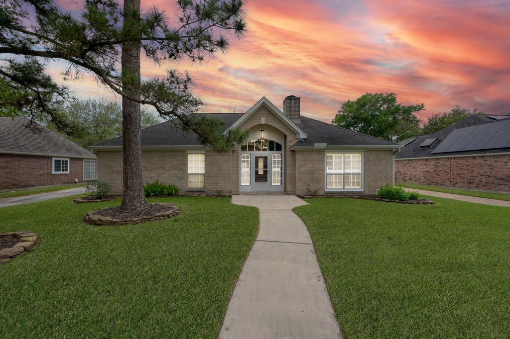 RARE FIND! Charming ONE STORY in highly sought out neighborhood of Southdown Village with a POOL! This home has so many great features and is also mobility friendly! As you walk in you will be wowed by the view through the wall of windows to the sparkling pool! Beautiful oak hardwood floors in entry, dining, living room, and hall. High ceilings, gorgeous wood trim, built-ins, gorgeous fireplace with gas logs. Formal dining, wood shutters, remodeled kitchen with large pull out drawers for excellent storage & granite counters, tile in kitchen breakfast & baths. Recent paint, Water heater 2020 & HVAC 2018. Large lot with a huge covered back patio! The beautiful saltwater pool is shaded half of the day. The whole backyard set up is perfect for relaxing evenings and entertaining! Low maintenance landscaping & sprinklers in front! Do not miss out on this gem!