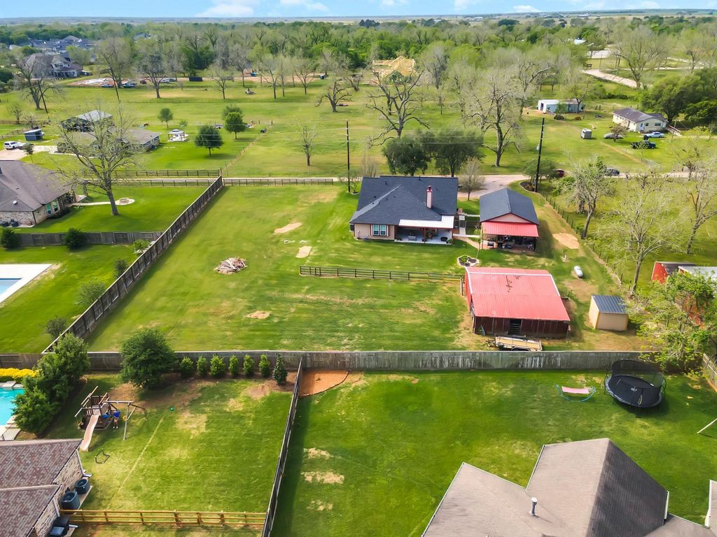 Beautiful 4-bedroom, 2-bathroom home on 1 acre of unrestricted land that is part of the City of Weston Lakes. with a barn and stable. Livestock and horses allowed. Located in Fulshear, Texas. No MUD Taxes, No HOA. LCISD Schools. Tucked away in a gated area. Never flooded.