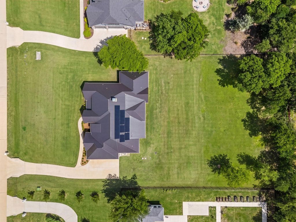 Experience refined Texas luxury living in the prestigious gated community of Waterstone Estates where privacy, space, and long-term value meet on a rare 1-acre homesite. Built by Oak Crest Custom Homes, this single story home offers 3,611 sq. ft. of thoughtfully designed living space with natural stone accents, wood beams, and abundant natural light throughout. The open concept layout features 4 spacious bedrooms with walk-in closets, plus a dedicated front office with double French doors and closet storage, ideal for working from home or flexible use. A formal dining room welcomes guests at the front of the home, while a spacious breakfast nook flows seamlessly into the chef’s kitchen, complete with premium Italian FLLI Bertazzoni appliances. The primary suite is a true retreat including a spa-inspired bath with a freestanding tub, oversized walk-in shower, and custom closet built-ins. A rare built-in storm shelter is discreetly located within the primary closet. Enjoy outdoor living with a covered patio featuring wood-accent ceilings, an outdoor kitchen, built-in grill, and Green Egg, all backing to a semi-greenbelt for added privacy. Additional highlights include, Metal roof (hail-resistant durability), Solar panels (paid off at closing), 3-car garage, Attic decking for extra storage, Mudroom with built-ins, and Plantation shutters throughout. Located in one of McKinney’s most sought-after acreage communities, this home offers both luxury and convenience near major highways, shopping, and top-rated schools. With continued growth in Collin County, it also presents long term appreciation. Offered at $950,000 well below tax value and the lowest price per sq. ft. in the neighborhood, this is an exceptional opportunity to own luxury real estate in McKinney.