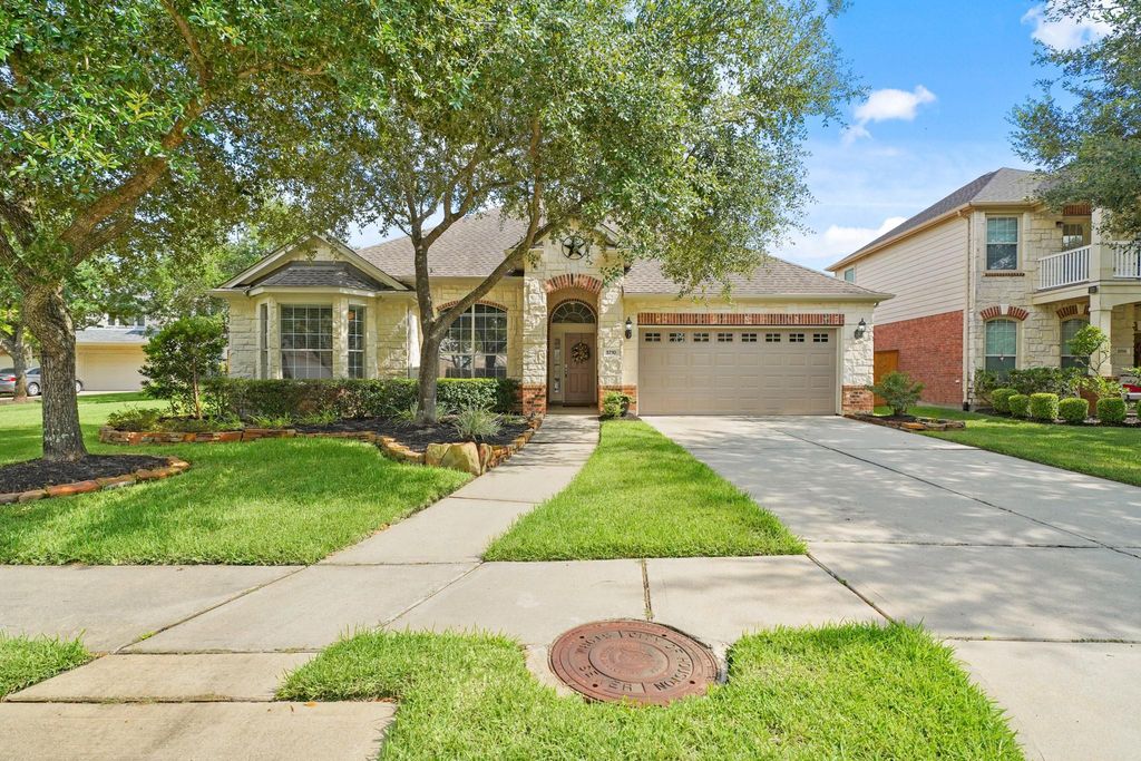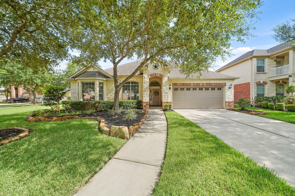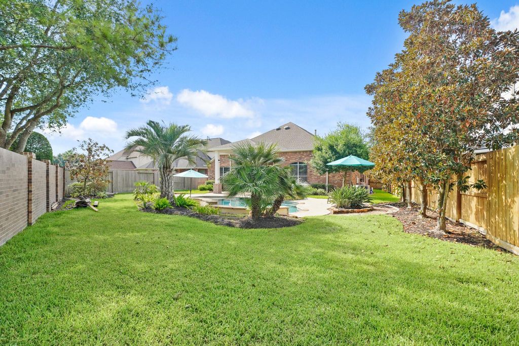 Welcome to this beautiful home in the heart of Seven Meadows! Perfect for modern living & entertaining, it features an open tile and luxury vinyl plank floor plan with soaring ceilings, natural light, and elegant finishes. The gourmet kitchen boasts quartz countertops, stainless steel gas appliances (fridge included), and ample cabinets, flowing into the breakfast area and family room with a gas log fireplace. The private primary suite includes a luxurious bath, walk-in closet w/built-ins. Additional bedrooms are well-sized, plus a home office and media/flex room, and utility room (washer/dryer included). Enjoy a beautifully landscaped backyard with a sparkling pool—ideal for relaxing or hosting. Nestled on a quiet street near top-rated Katy ISD schools, parks, shopping, dining & major roadways. Seven Meadows offers resort-style amenities: pools, tennis courts, playgrounds & trails. Pool maintenance & landscaping included. Don’t miss your chance to live in this sought-after communi
