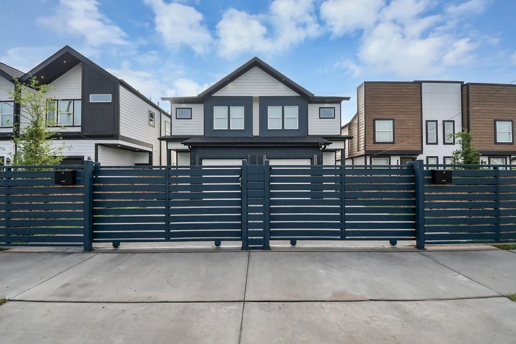 Beautiful newly built duplex blending contemporary style with everyday practicality. Each unit offers 3 bedrooms, 2.5 bathrooms, and a bright open-concept floor plan highlighted by 10-foot ceilings. The kitchens are designed with quartz countertops and backsplashes, stainless steel appliances (including a refrigerator), and abundant cabinet space. Durable luxury vinyl plank and tile flooring run throughout, complemented by an attached garage. Upstairs, the primary suite provides a private retreat with an en-suite bath featuring dual sinks and an expansive frameless glass shower. The secondary bedrooms are also en-suite with a Jack-and-Jill style bathroom, with dual sinks. The property is fully fenced, with individual driveway gates for each unit. Ideally located just minutes from NRG Stadium, the TMC, and easy access to Hwy 610 and 288. This property is a fantastic opportunity for both homeowners and investors. Room dimensions and assigned schools to be verified by the buyer.