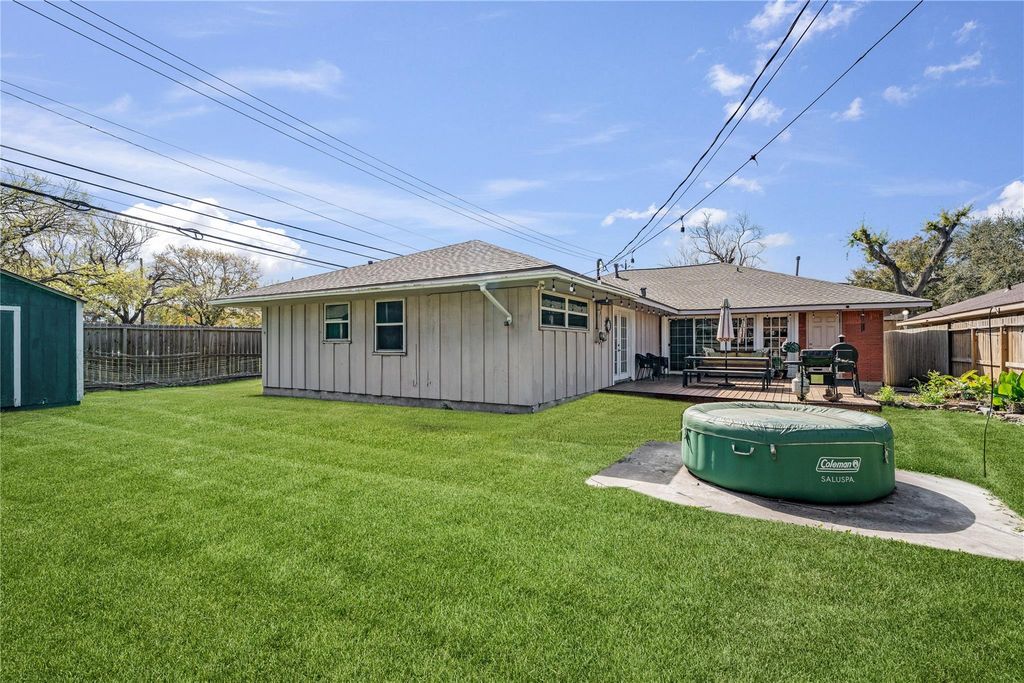 Conveniently located with quick access to Hwy 288, 610, and the Texas Medical Center, this single-story home sits on a spacious corner lot and blends timeless character with thoughtful updates throughout. Restored original hardwood flooring flows through an open-concept layout connecting the living, dining, and kitchen spaces. The kitchen features modern shaker cabinetry, white quartz countertops, and a dedicated dry bar with wine fridge nook, ideal for everyday living and entertaining. Crown molding and natural light enhance the home’s warm, inviting feel, while a light-filled sunroom offers flexible use as an office, secondary living area, or retreat. A private secondary suite with en suite bath adds versatility. The expansive backyard features a raised deck (2022), new fencing (2025), and generous green space. A new roof (2025), HVAC (2022), and water softener (2022) add lasting value.