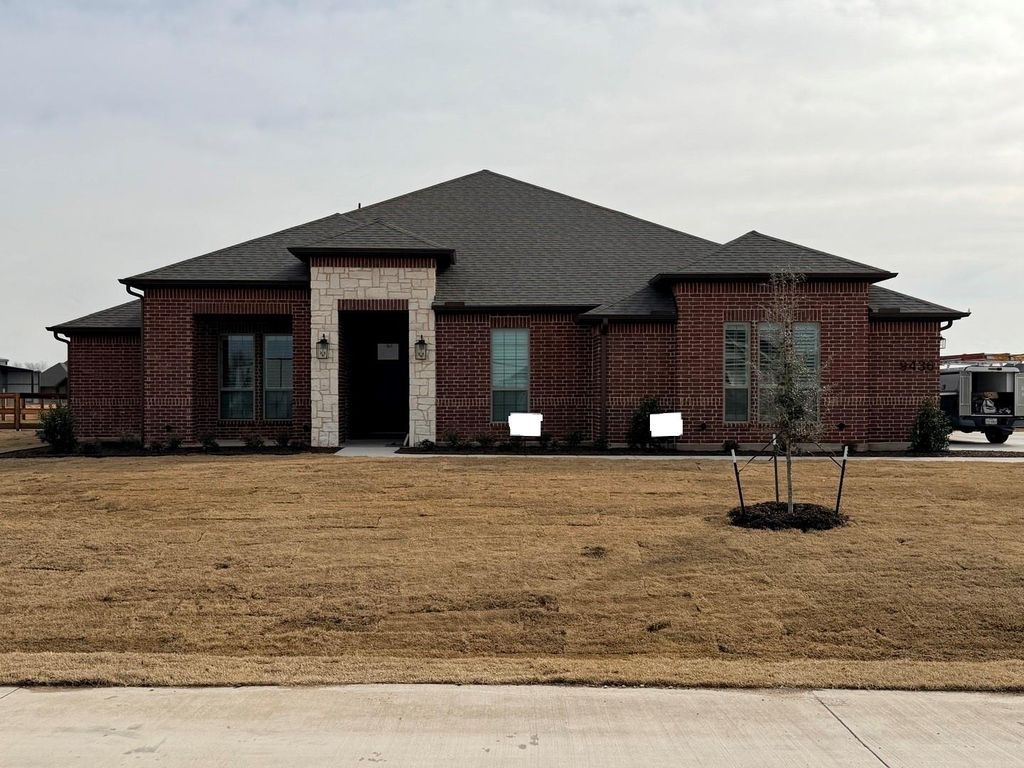 MLS# 21246457 - Built by Brookson Builders - Ready Now! ~ Discover this stunning single-family residence in the desirable Green Prairie Country Estates, completed in 2025. Boasting 2,841 sq ft, this home features four spacious bedrooms, including four primary suites, and four bathrooms—three full and one half. The open floorplan is accentuated by decorative lighting and a central kitchen island, perfect for entertaining. Enjoy cozy evenings by one of the two wood-burning fireplaces, located in the family room and outdoors. Two living areas provide ample space for relaxation, while the covered patio invites outdoor enjoyment. Additional highlights include a three-car garage, walk-in closets, and modern amenities such as central heating and cooling. Located within Ponder ISD, this property is ideal for families seeking comfort and convenience. Don’t miss the opportunity to call this beautiful home yours!
